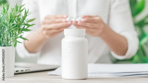 desk, vitamin, supplement, paperwork, laptop, productivity, health, lifestyle, workday, pause, moment, sharpened, bottle, office, wellness, nourishment, supplement, vitamin, greenery, plant, casual attire, concentration, multitask, business life, office supply, career, mindfulness, time management