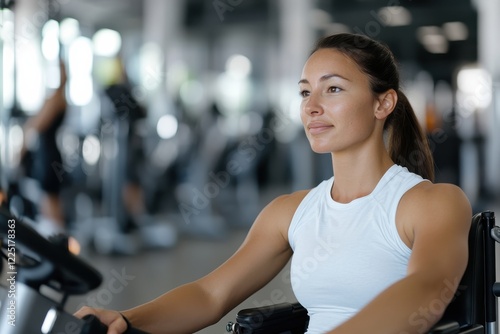 woman, gym, focused, fitness, training, strength, routine, commitment, health, active, determination, motivation, empowerment, perspiring, cardio, exercise, athleticism, enjoyment, resilience, well-being, energetic, smile, joyfulness, lifestyle, performance, 2023, progress, improvement, physical fitness, spirit, ambitious, happiness, dedication