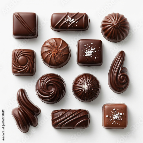 A delectable and luxurious collection of rich, dark chocolate pieces, showcasing their glossy sheen and textured surfaces 21 copy