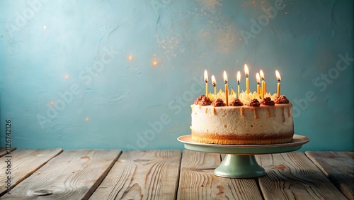 birthday, cake, candle, dessert, sweet, delicious, celebration, festive, party, joy, happy, wooden, table, background, creamy, caramel, deliciously, gourmand, pastry, baked, confectionery