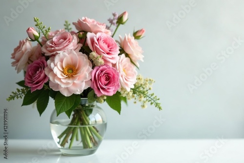 A delicate and intricate flower arrangement in a crystal vase, flower arrangement, high end, arrangement