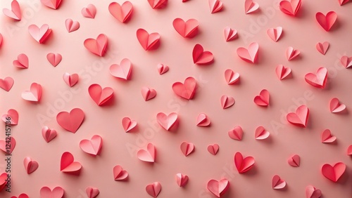 A Delicate Arrangement of Coral Paper Hearts on a Pale Pink Background
