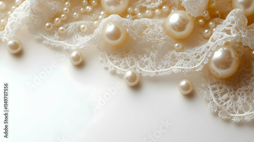 A delicate arrangement of lace and pearls, evoking elegance and sophistication.
