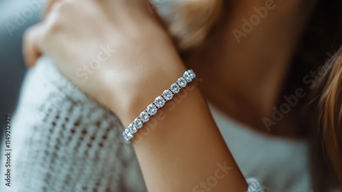 A delicate chain adorns a woman's hand, set against a backdrop of a boundless blue sky. The combination exudes an air of elegance and a sense of freedom. It's a visual that stirs the imagination, perh