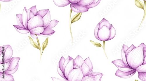 A delicate, hand-painted lotus flower pattern in soft purple tones against a white background, exuding elegance and tranquility.