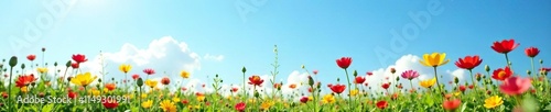 A delicate patch of wildflowers against the vast blue sky, petals, flowers