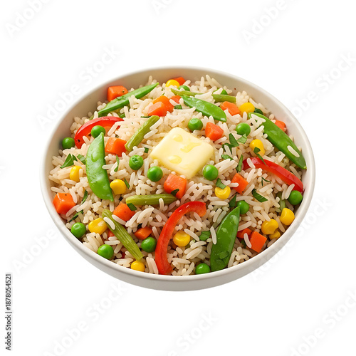 A delicious bowl of mixed vegetable rice with butter on transparent background