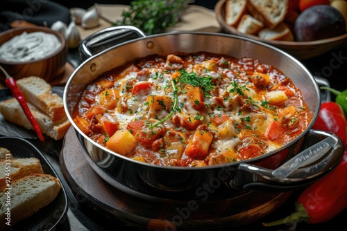 food, dish, cooking, vegetable, cheese, meal, pot, herb, garnish, ingredient, cookery, receipe, dinner, lunch, stew, hearty, fresh, savoury, favor, comfort, homemade, presentation, table, dining, warmth, nourishment, colours, appetising, rustic, seasonal, culinary, texture, aroma, enjoyment, share, serving, platter, family, gathering, taste, healthy, vibrant, delicious, satisfying, indulgent, variety