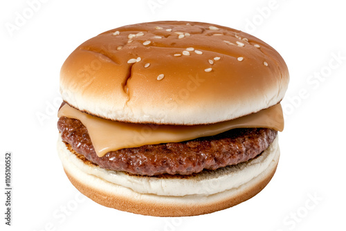 A delicious hamburger featuring a sesame seed bun, a juicy beef patty, and a slice of cheese.