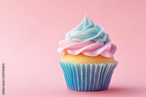 cupcake, frosting, pink, blue, sweet, dessert, bakery, food, confection, cream, swirl, paper, liner, vanilla, butter, sugar, baked, treat, delicious, colourful, background, isolated, single, studio, presentation, simple, smooth, soft, texture, edible, confectionery, epicure, fresh, cake, party, celebration, birthday, joy, favor, elegant, fancy, vibrant, pastel, pretty