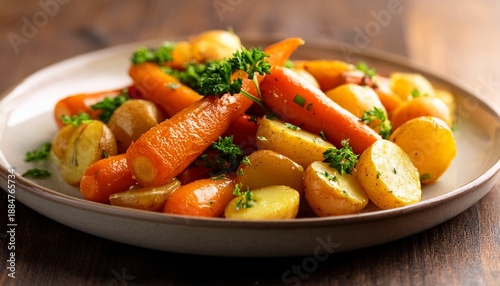 a delicious plate of sauteed carrots and potatoes exuding warmth and comfort showcasing their vibrant colors and appealing textures perfect for any comforting meal