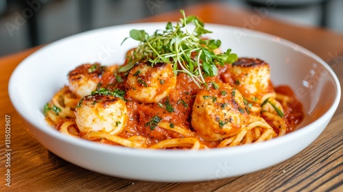 pasta, shrimp, tomatoes, sauce, herb, satisfaction, unique, presentation, dining, feast, italian, life events, elegant, taste, ingredient, eatery, vegetarian, nourishment, favor, indulgence, garnish, homemade, cook, chef, culinary, appetence, aroma, seafood, savoury, plate, healthy, epicure, texture, dish, meal, colourful, food, fresh, bowl