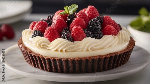 tart, berry, chocolate, cream, raspberry, blackberry, mint, delicious, fresh, filling, garnish, dessert, sweet, epicure, delectable, tasty, baking, culinary, food, decadent, treat, indulgence, dining, bakery, artisan, tempting, fruit, rich, confectionery, modern, classic, artisanal, sophisticated, elegance, culinary arts, luxury, plated, creative