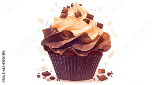 A delightful 2d illustration featuring a cupcake adorned with a sweet swirl set against a white background
