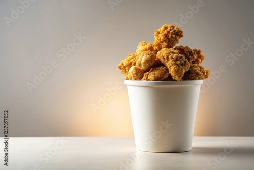 A delightful bucket of crispy, golden-brown, savory chicken pieces, perfect for a satisfying meal or snack
