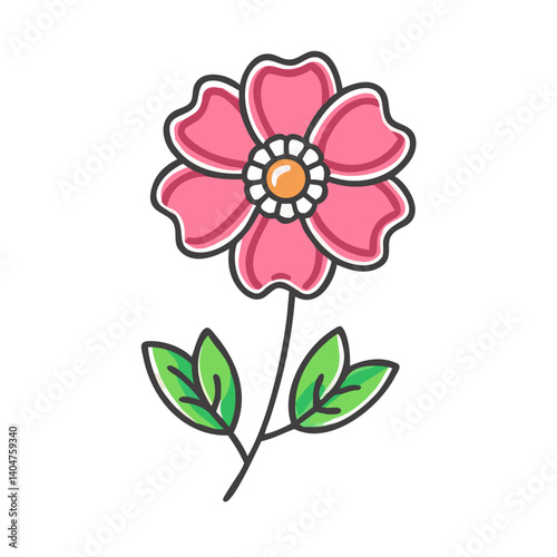 flower, pink, leaf, green, botanical, illustration, drawing, cute, charming, nature, plant, floral, design, art, pretty, aesthetic, summer, spring, blossom, bloom, beauty, vibrant, colourful, graphic, vector, image, element, simple, minimalist, line art, hand-drawn, decorative