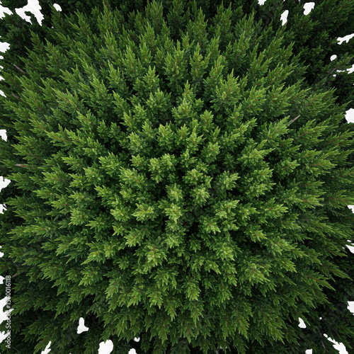 A dense green coniferous tree isolated on transparent background