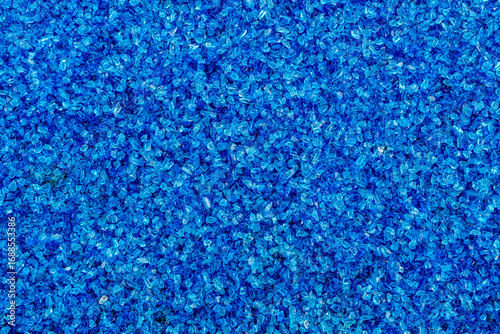 a densely packed, textured surface covered in small, irregularly shaped blue gravel or pebbles.