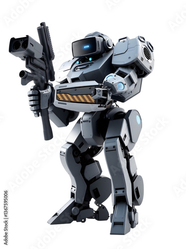 robot, warrior, futuristic, gaming, combat, military, weapon, gun, technology, science fiction, defense, grey, metallic, isolated, action, ready, standing, powerful, modern, isolated on white, weaponry, closeup, high technology, armoring, mechanical, battle, digital artwork, graphic design, science fiction, fantasy, illustration