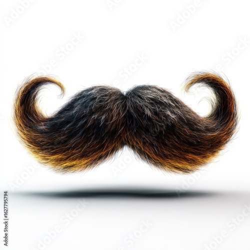 A Detailed Close Up of a Handsome Curled Mustache Isolated on White Background