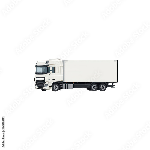 A detailed illustration of a white delivery truck on a transparent background, showcasing its design and functionality for logistics and transportation.