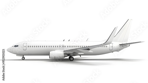 A detailed image of a commercial airplane on a white background, highlighting its fuselage and wing design. The aircraft is presented in a side view, emphasizing its aerodynamic shape.