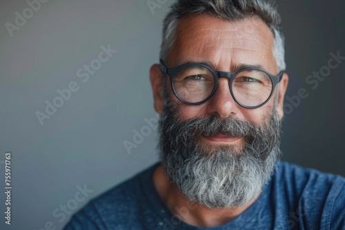 A detailed image of a man with glasses and a beard. Suitable for various professional and casual concepts.