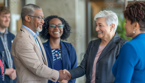 senior, professional, shaking hands, success, beautiful, copy space, diverse, collaboration, partnership, teamwork, leadership, guidance, life events, cognition, wisdom, support, development, growth, advancement, progress, diversity, cooperation, oneness, respect, appreciation, trust, confidence, motivation, inspiration, aspiration, celebration, achievement, accomplishment, gratitude, connection, interaction