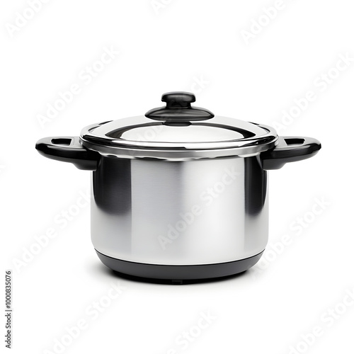 A Detailed Macro Shot of a Sleek Modern Slow Cooker on White Background