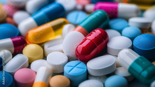 A detailed macro shot of multicolored pills and capsules, representing a broad range of pharmaceutical drugs used in healthcare and patient treatment.