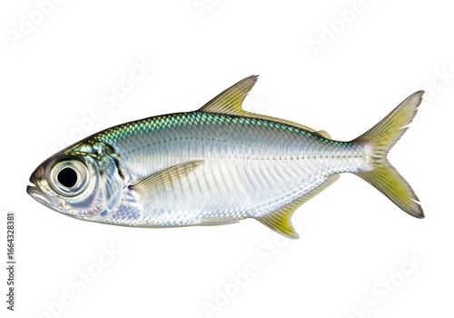A detailed profile view of a silverfish, showcasing its scales and fins against a stark black background.