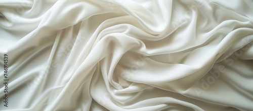 A detailed shot of a white fabric featuring elegant wave patterns, showcasing the intricate artistry and craftsmanship of the design.