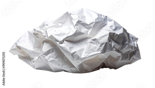 A detailed studio shot of a crumpled white paper ball, showcasing intricate folds, creases, and textures. This isolated object is on a transparent background, ideal for various design concepts.