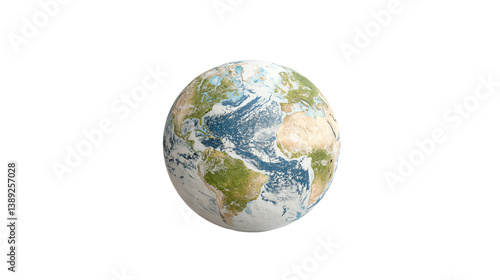 A detailed view of Earth showcasing continents and oceans, isolated on a white background, perfect for educational and design uses.