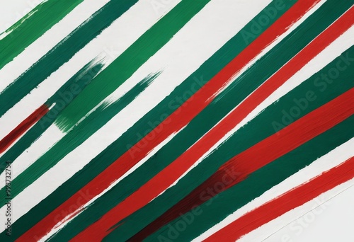 a diagonal pattern of green and red paint strokes on a white background, creating a vibrant and dynamic visual effect