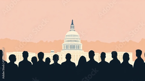 capitol, washington, illustration, government, politic, democracy, people, silhouette, landmark, us, architecture, patriotism, abstract, oneness, crowd, national, civic, capital, historical building, historic, american, iconic, gathering, public, observation, tour tourism, symbolic, freedom, justice, skyline, structure, congress, building, independence, nation, citizenship, equality, decision, leadership, hope, community, representation, election