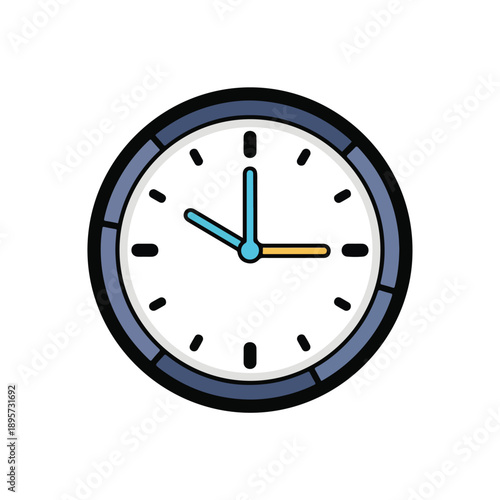clock, illustration, digital, white, face, blue, yellow, black, hand, hours, minute, time, round, circle, simple, minimalistic, design, graphic, icon, symbol, horologe, watch, timer, modern, clean, art, visual