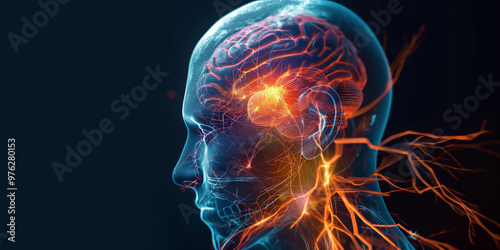 cephalalgia, migraine, human, head, nerve, anatomy, medicals, pain, tension, neural, health, nerve, diagram, relief, pressure, pathway, point, body, structure, detailed, educational, cranial, informative, brain, scientific, digital, illustration, depiction, visual, representation, copy space