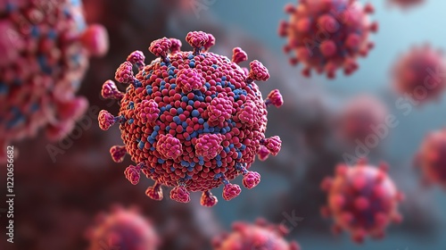 A digital illustration of a virus, showcasing its spherical structure with spikes, depicted in vibrant colors.
