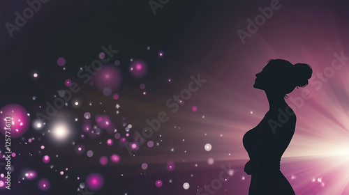 A digital illustration of a woman's silhouette in profile, illuminated by soft pink and purple glowing lights, symbolizing empowerment, inspiration, and the celebration of femininity.