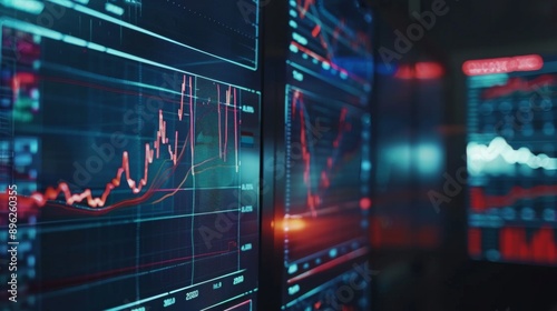 A digital screen displaying a line graph with fluctuating stock market data.