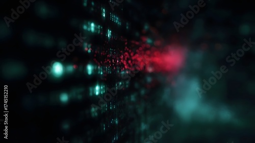 digital, datum, technology, cyber, threat, abstract, futuristic, glowing, network, system, dark, black, red, teal, cyan, blue, aglow, bright, vibrant, code, binary, information, connection, security, attack, danger, breach, risk, problem, issue, bankruptcy, disruption, chaos, modern, complex, matrix, flow, stream, particle, dot, light, pixel, grid, energy, motion, dynamic, background, cyberspace