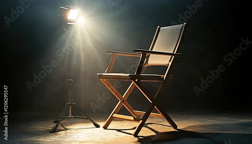 A director's chair with a spotlight shining on it, symbolizing the role of Hollywood figures in content creation and storytelling