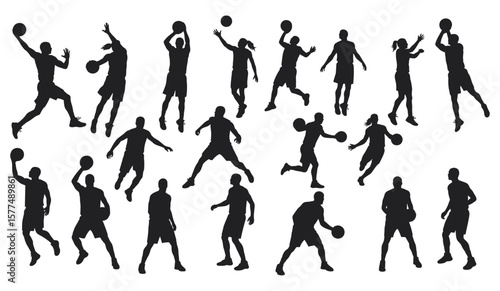 A Diverse Collection of Athletes in Action Poses, Featuring Shooting, Dribbling, and Jumping Movements