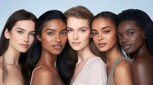 A diverse group of beautiful women with natural beauty and glowing smooth skin