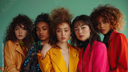 A diverse group of beautiful women with natural beauty and glowing smooth skin. Portrait of many attractive female fashion models with great skincare of all races, tones and style