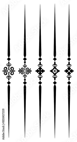 A diverse set of sophisticated horizontal borders featuring swirls, geometric diamonds, and minimalist flourishes.