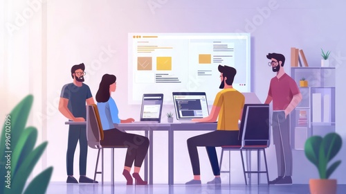 team, office, work, project, software, development, code, coding, business, meeting, collaboration, technology, modern, contemporary, innovation, design, creative, professional, desk, chair, computer, monitor, laptop, screen, white, board, workspace, interior, people, teamwork, group, discussion, conversation, presentation, strategy, brainstorming, planning