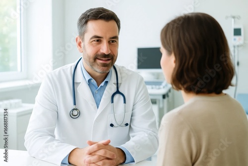 A doctor listens intently as a patient shares their health concerns in a serene hospital setting
