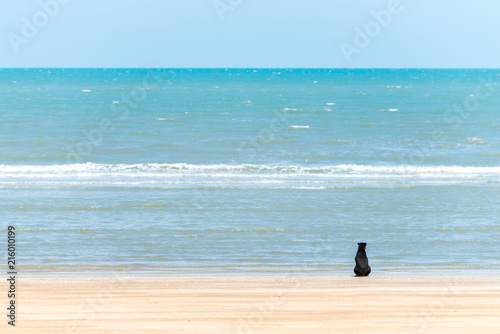 dog, beach, sea, looking, blue, over, ocean, sky, sand, view, pet, happy, nature, white, water, sitting, summer, outdoors, landscape, coast, back, collar, sunny, beauty, out, animal, wave, relaxed, beautiful, portrait, background, adult, holiday, travel, cloud, lonely, alone, sadly, sad, glum, brokenhearted, mournful, murk
